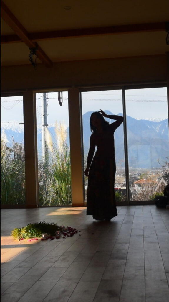 ベリーダンスの基礎の動きをベースにコンビネーション、直感を大切に即興的な動きへと繋げていきます。